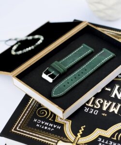 Green leather watch strap
