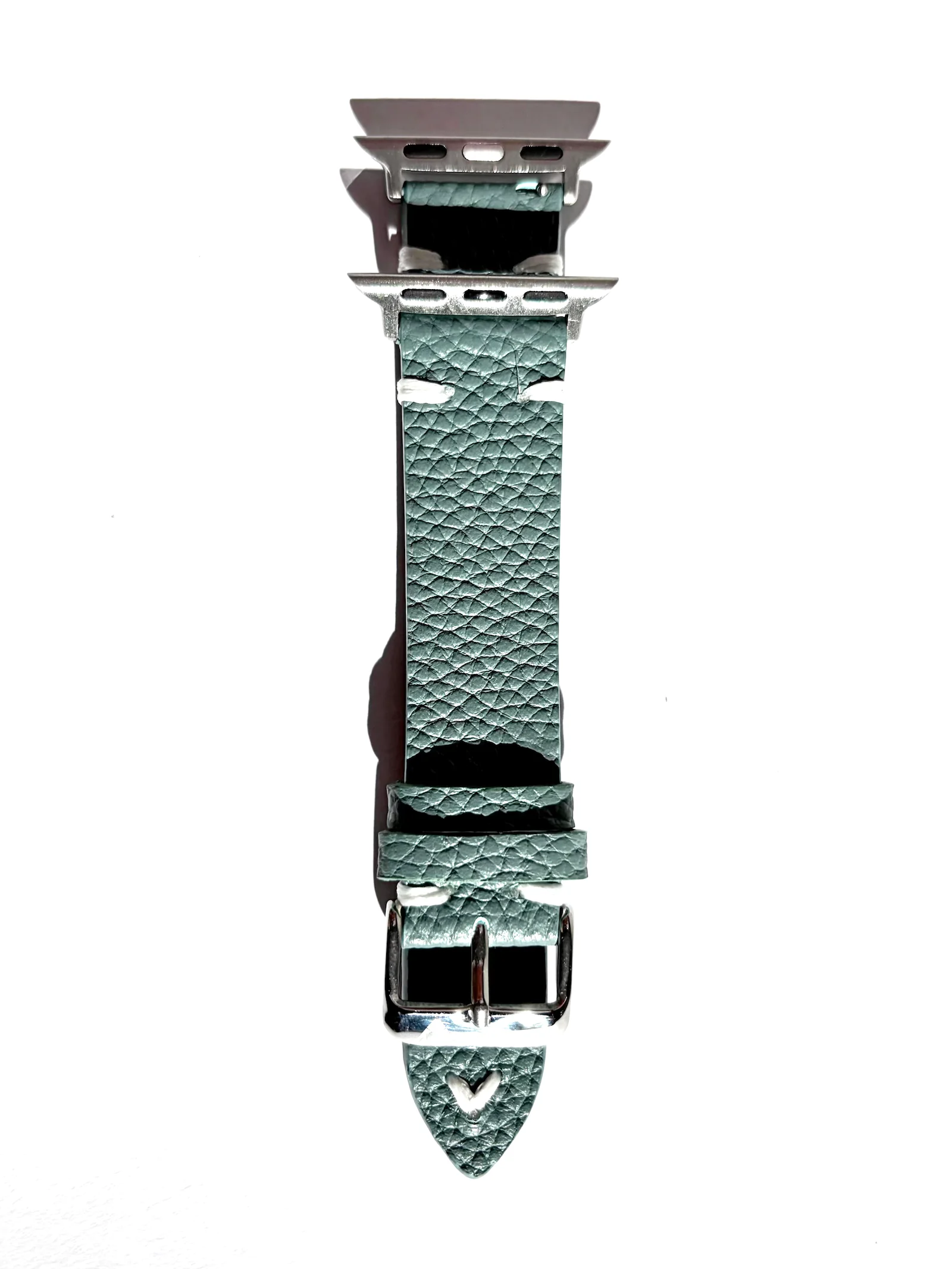 Our Apple Watch band evokes the pastel green hues of pistachios. Soft, grained leather and waxed thread combine to create a harmonious, understated band.