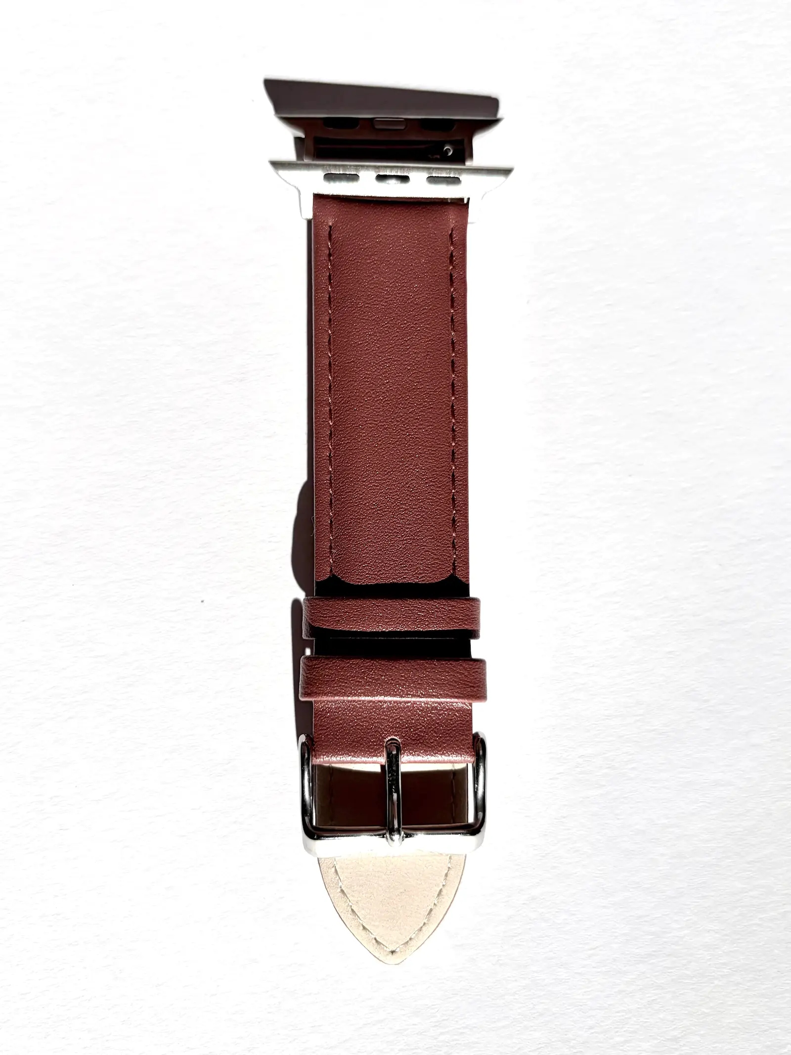 Fawn brown describes the distinctive brown tone of this leather watch strap. Its simple, classic style doesn't detract from your Apple Watch while giving it a sophisticated look.