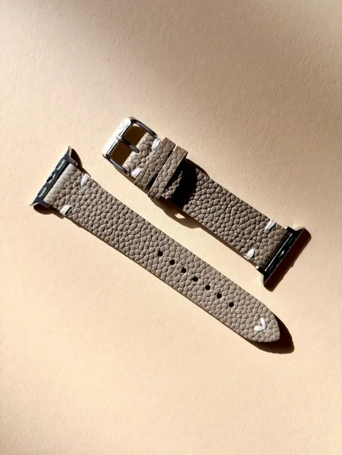 Our Apple Watch band impresses with its warm color, reminiscent of vast, sun-drenched savannah landscapes. Crafted in a simple style from two layers of leather.