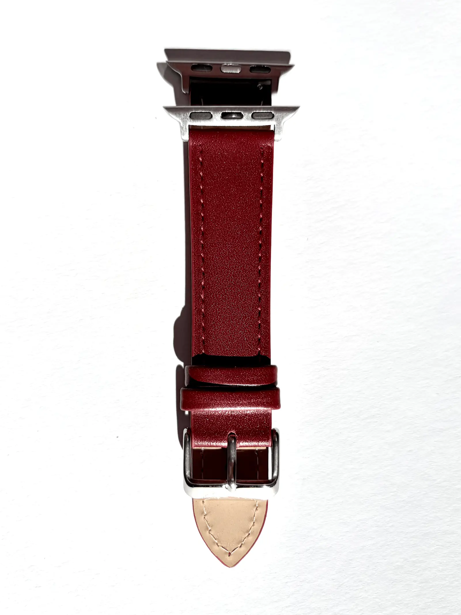The warm, brick red characterizes this leather strap for the Apple Watch. It fits perfectly on all Apple Watch series. Thanks to the high-quality smooth leather and continuous stitching, the strap is extremely durable for everyday wear.