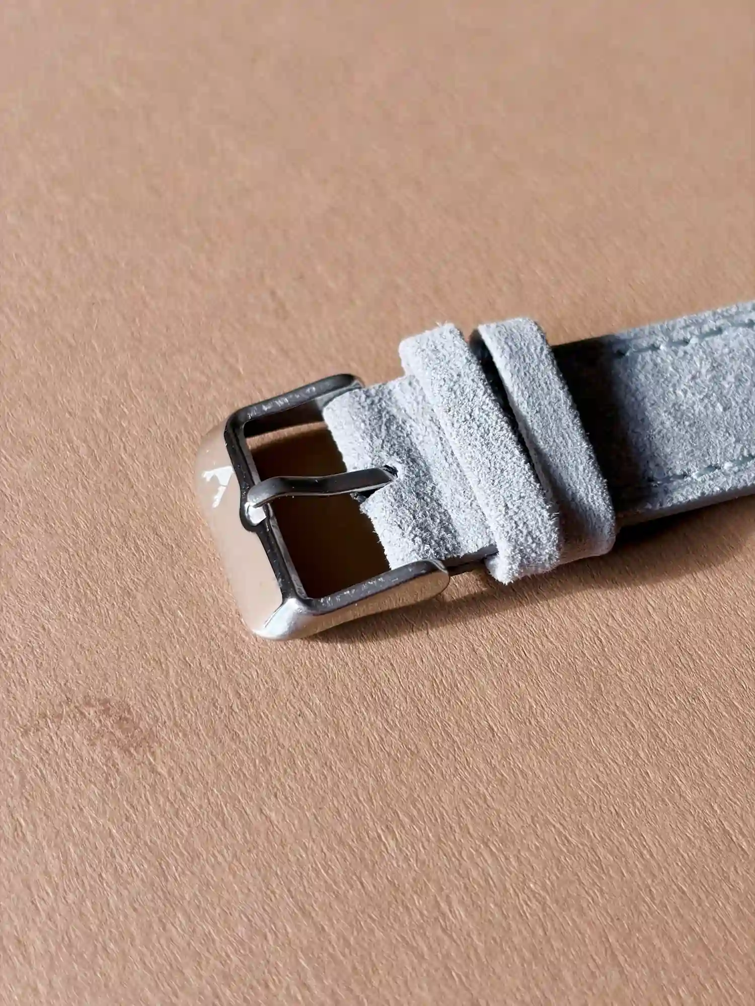 Our gray-blue suede Apple Watch strap. Crafted from fine suede with a smooth leather interior.