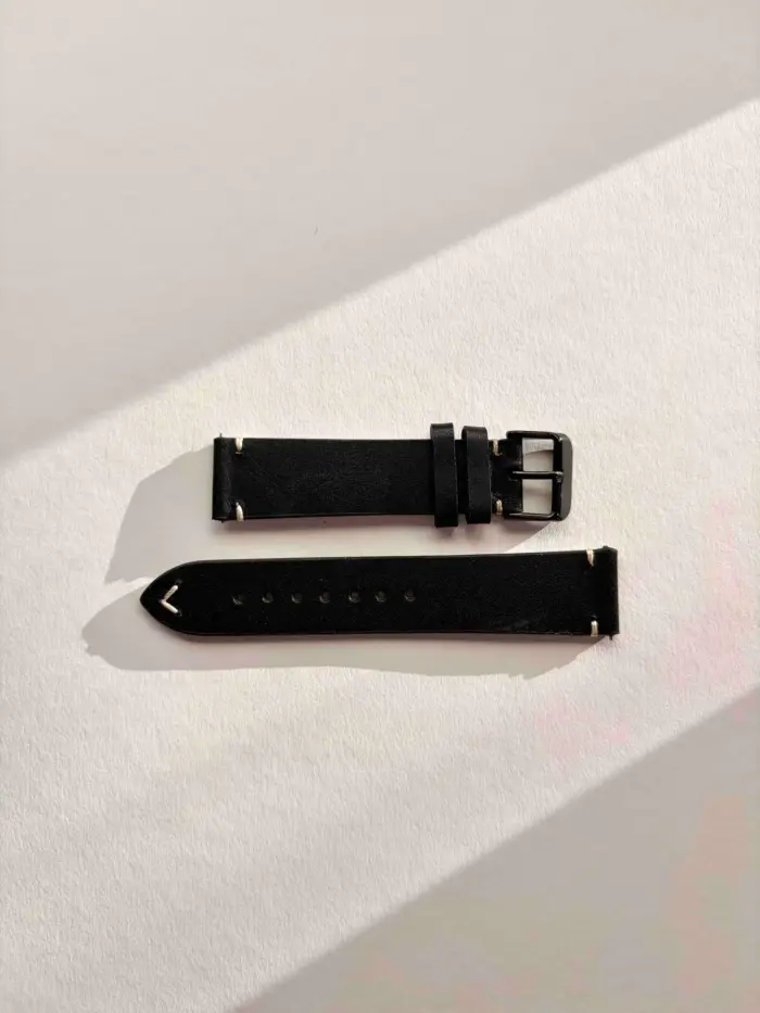 Black leather watch strap
