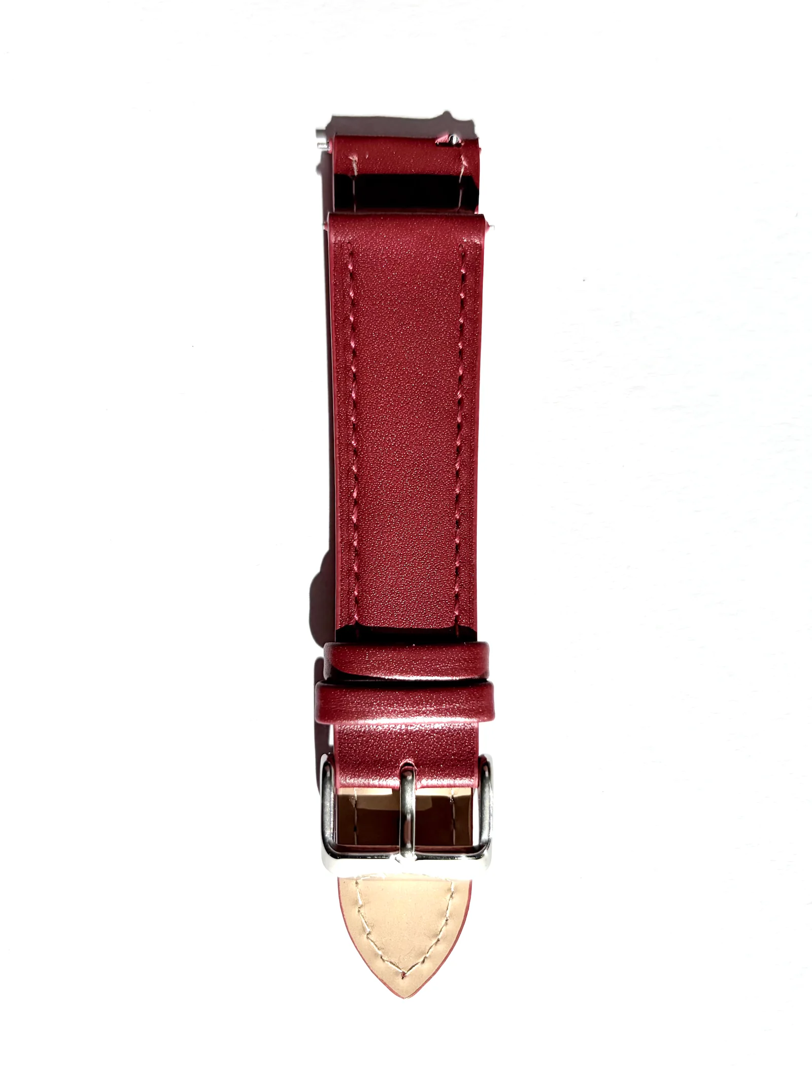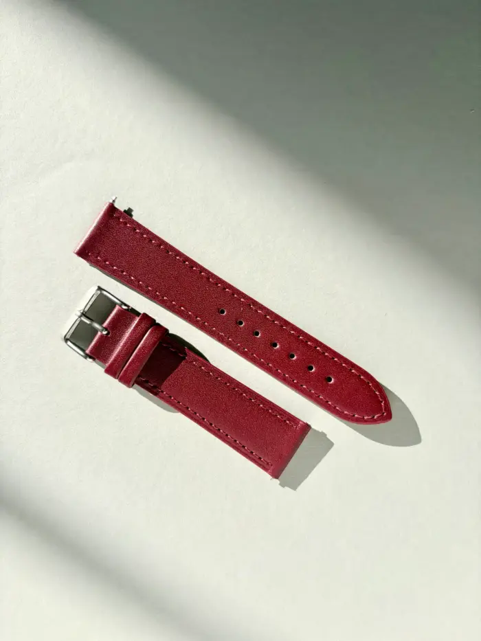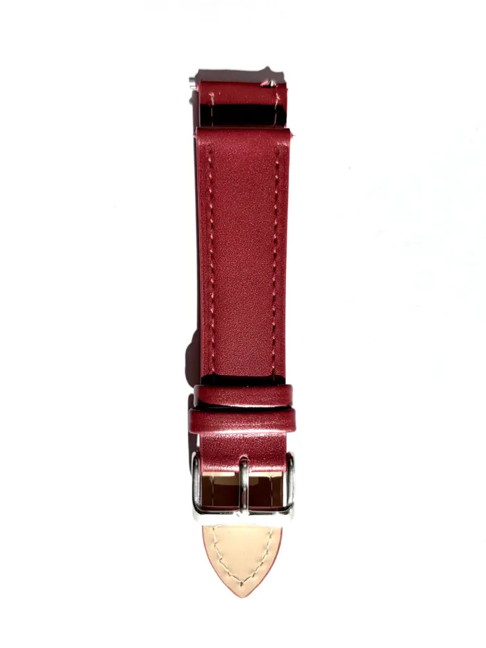 Our crimson red smooth leather watch strap is handcrafted with classic stitching. The strap features quick-release lugs so you can attach it to your watch quickly and easily.
