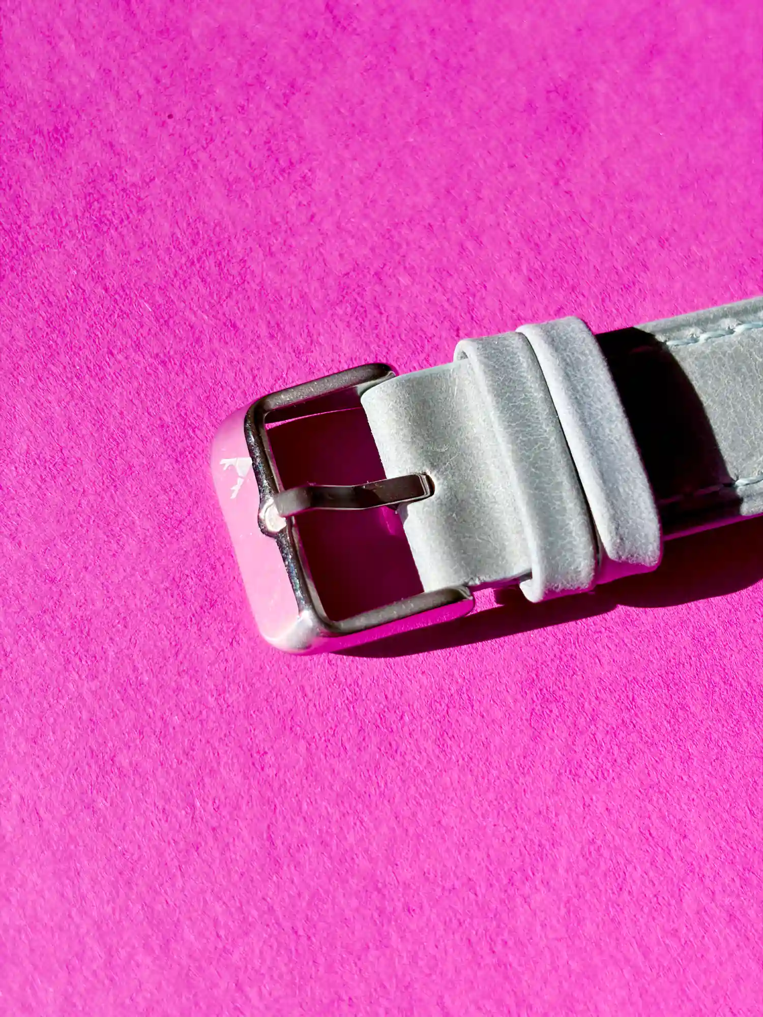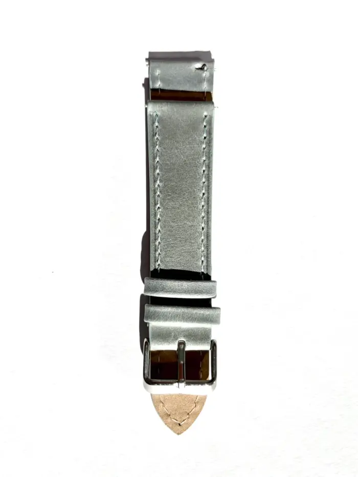 Our gray-blue leather strap is perfect for summer and spring. The light color pairs perfectly with light outfits. At the same time, the matte leather of our handcrafted watch strap lends a particularly high-quality style.