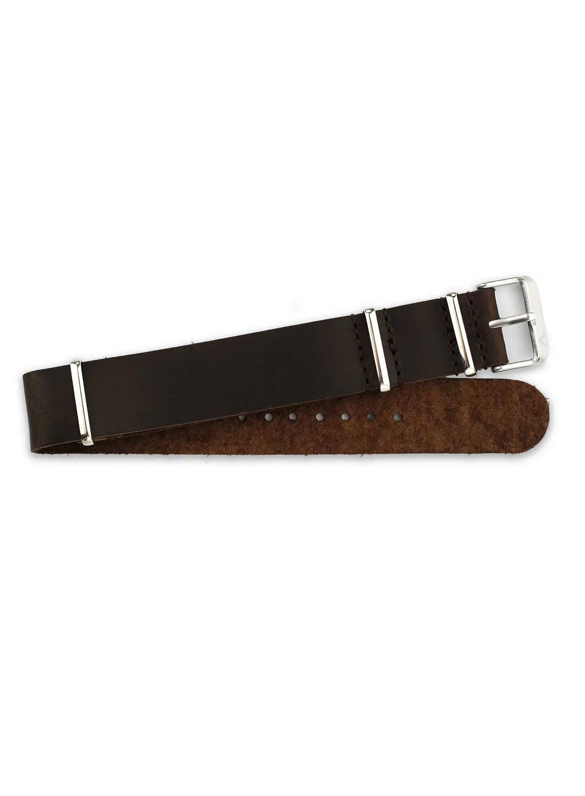 With its dark brown leather, the NATO strap transforms your watch into a unique vintage accessory. It pairs perfectly with a dark brown leather belt or shoes.
