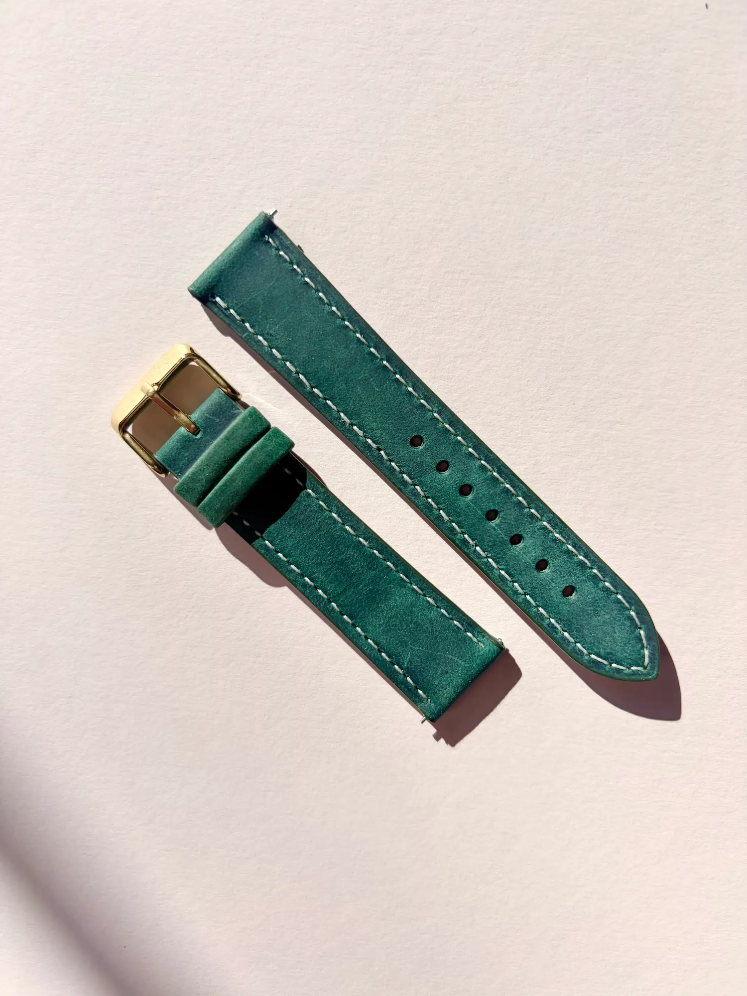 Green leather watch strap