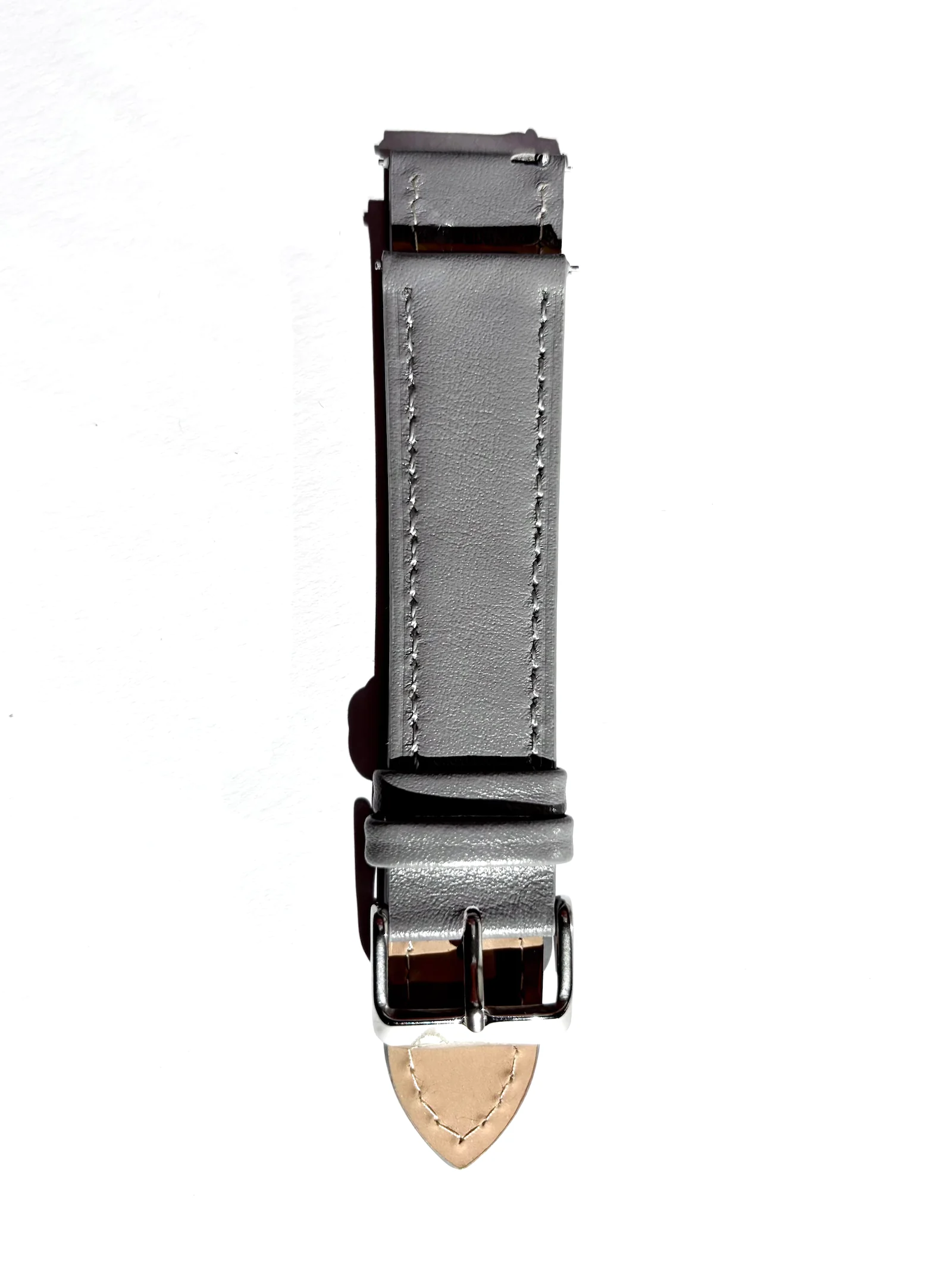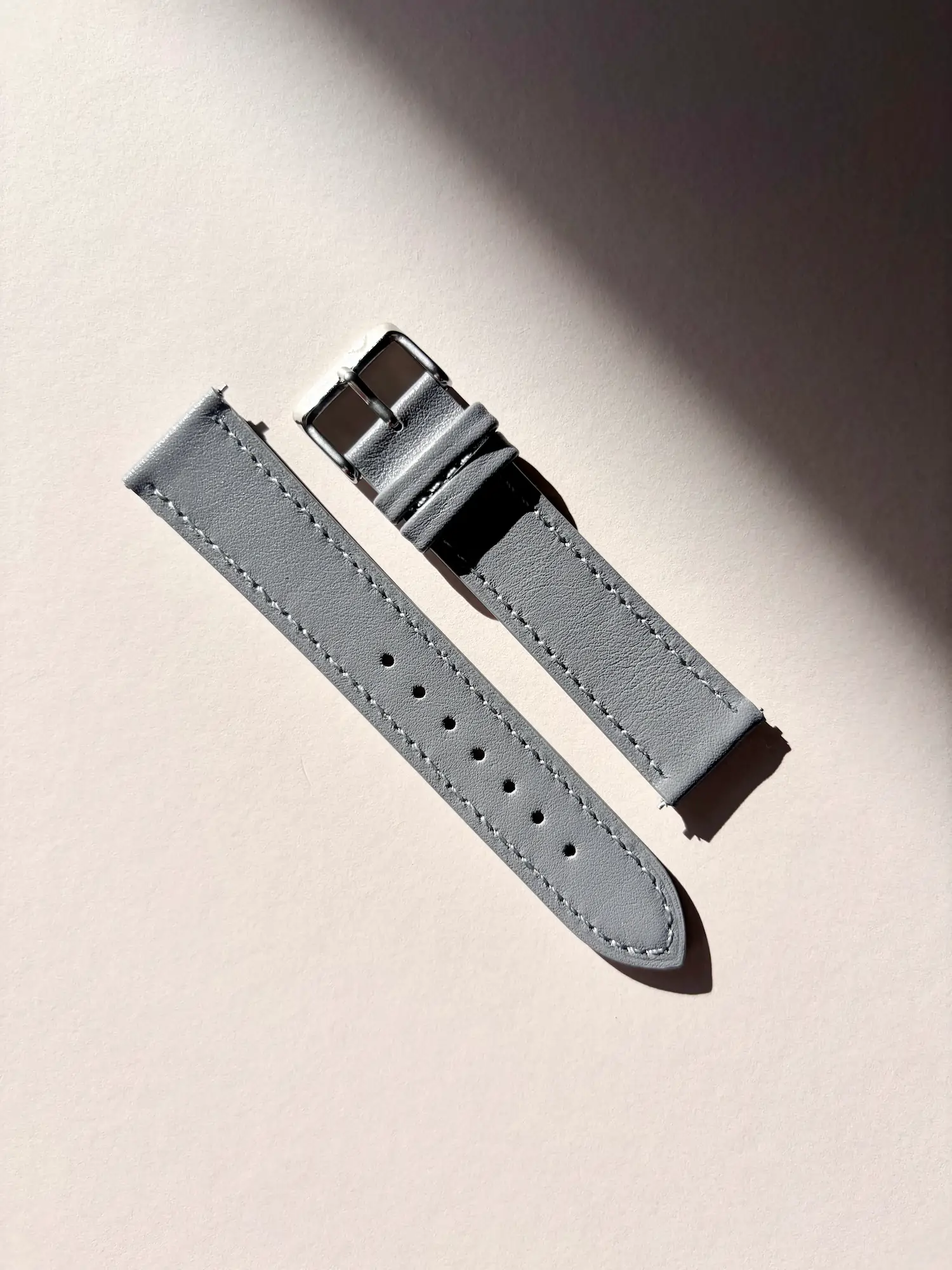 Our watch strap is made of smooth leather in dove grey with a clean, minimalist look. The fine leather feels comfortable on the wrist and develops a natural patina over time.
