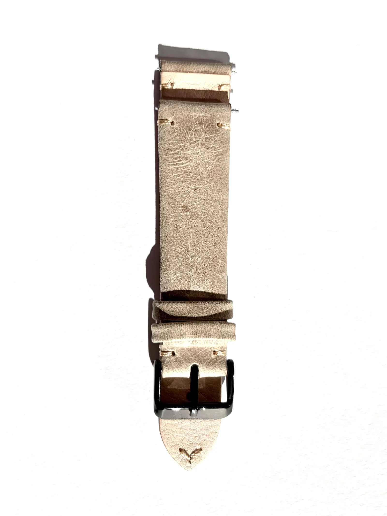 A gray leather watch strap that pairs perfectly with almost any outfit with gray accents. The simple design, combined with the gray hue, creates a timeless style for your watch.