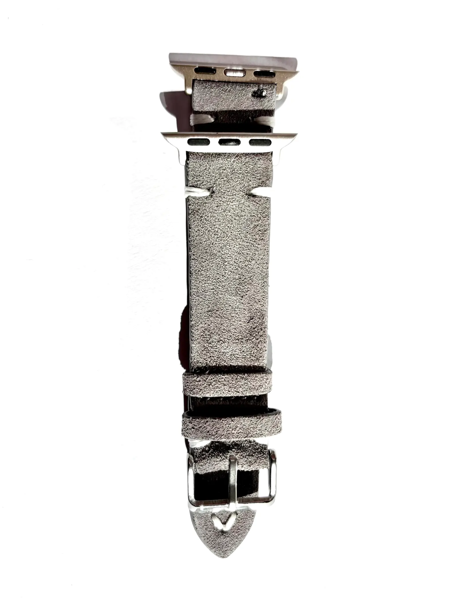 Wearing your Apple Watch in the urban jungle? No problem with our gray suede strap. Folded in half, the strap is extremely durable and feels particularly soft on the wrist.