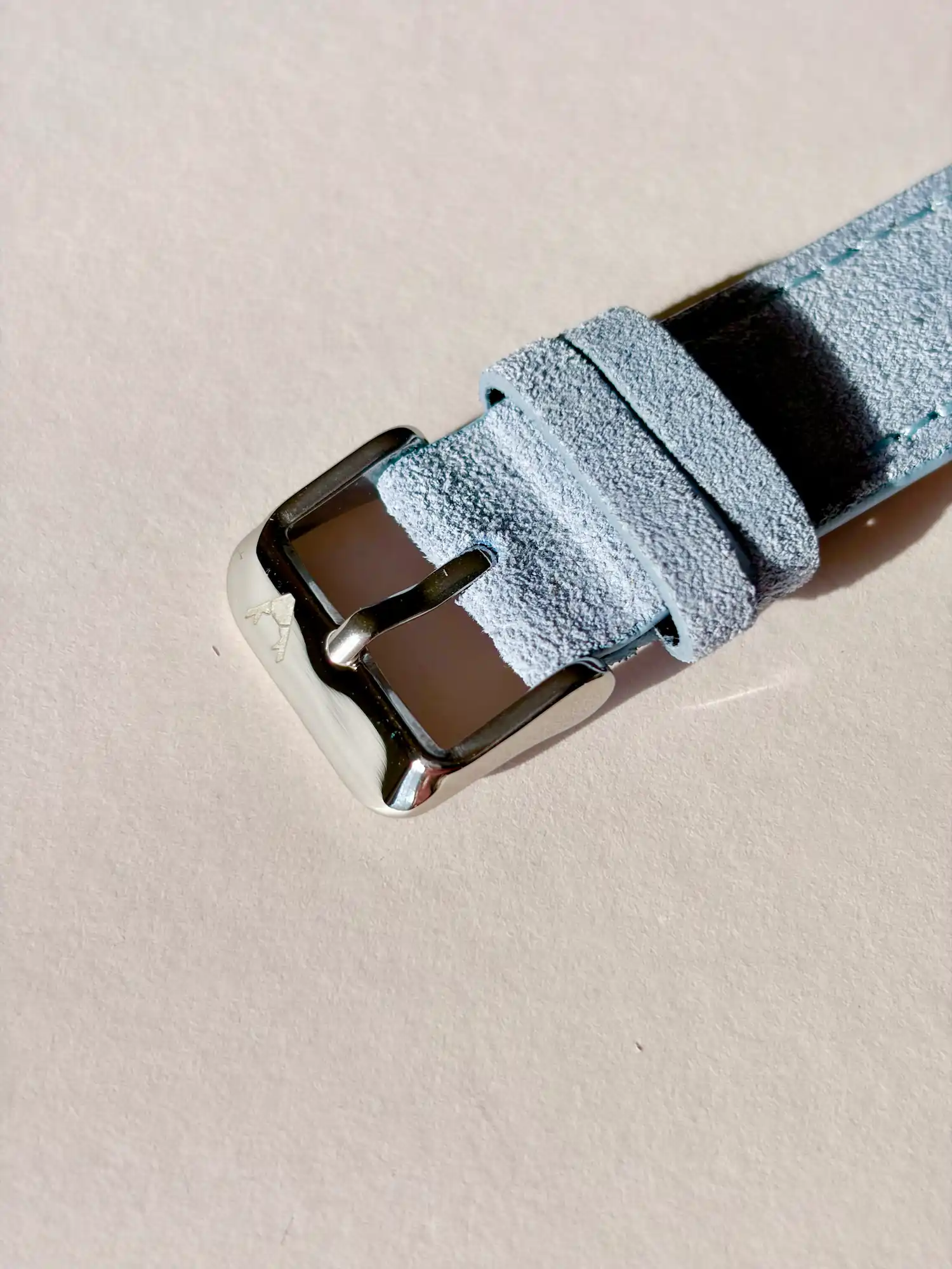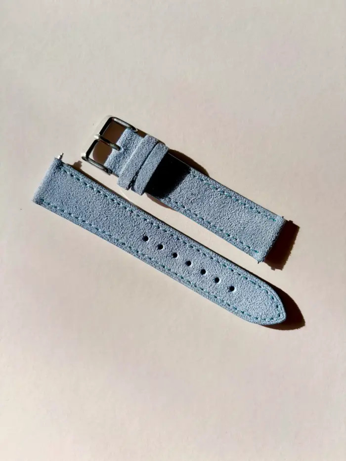 Our light blue suede strap perfectly complements a variety of watch cases and is suitable for both formal occasions and everyday wear. It adds a touch of color and individuality to your watch without being overly overpowering.