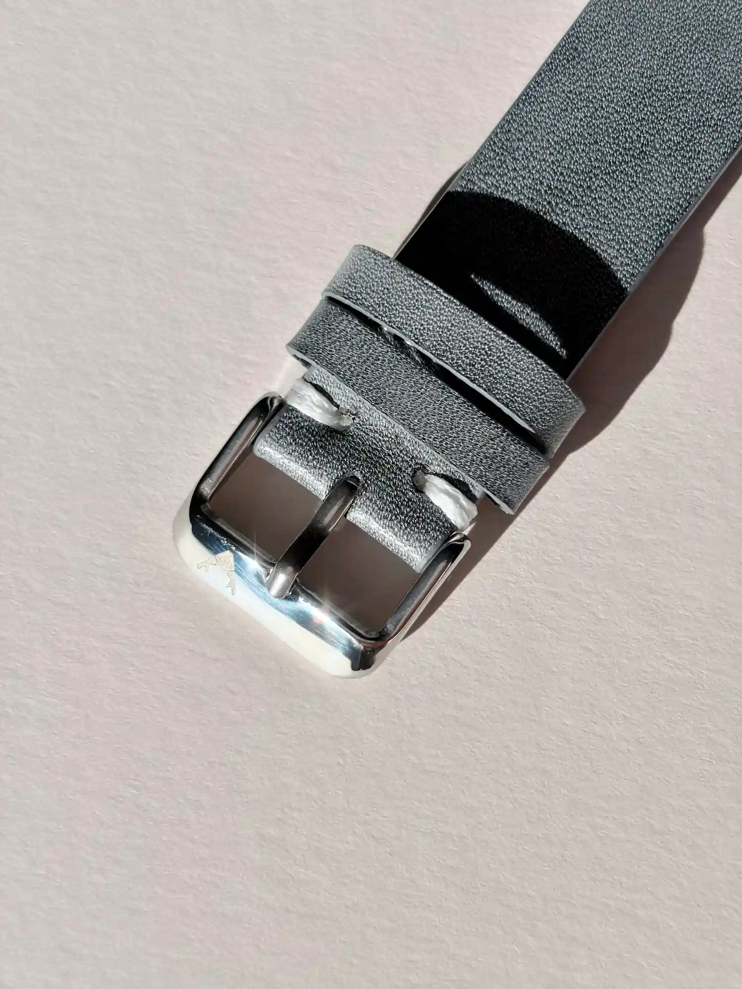 Our watch strap in basalt, inspired by dark volcanic rock, exudes a calm and serene appeal. Firm, smooth leather and robust thread combine to create a remarkably harmonious strap.