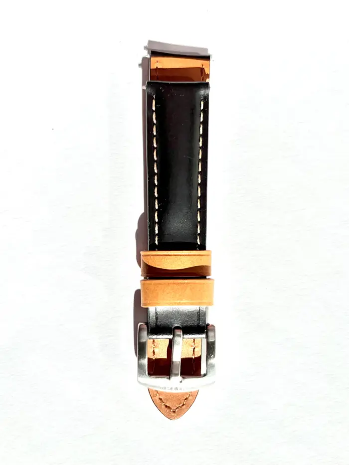 The strap is of course made of genuine leather, sewn and sealed by hand.