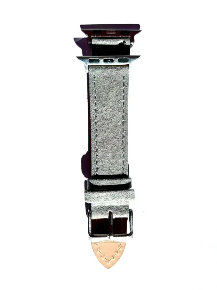 Unser grau-blaues Apple Watch Armband aus Wildleder. Gefertigt aus feinem Wildleder mit Glattleder auf der Innenseite.