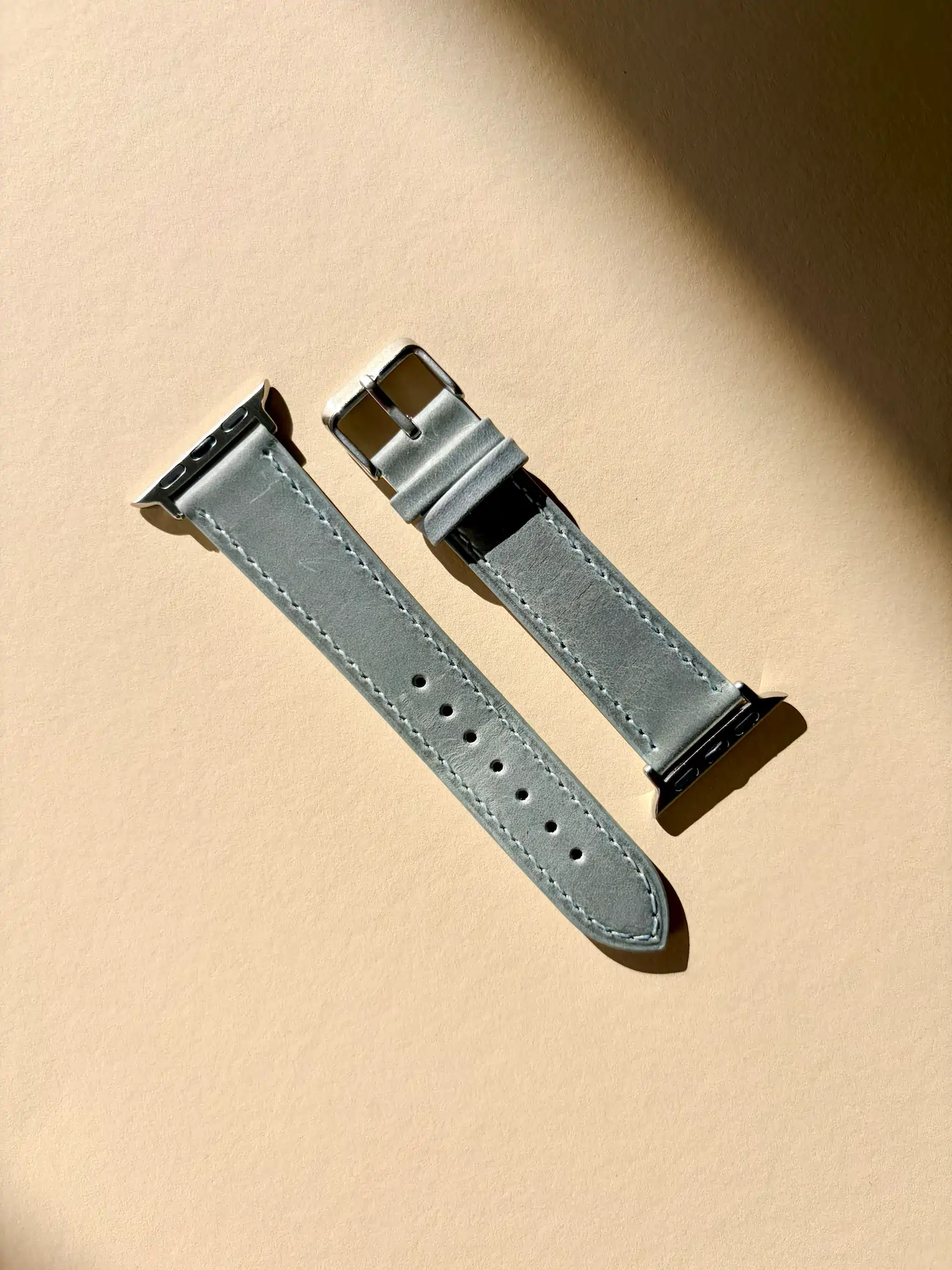 Wolkenblaues weiches Echtleder in einem frischen Hellblau bis Graublau. Das Manufaktur Lederarmband für deine Apple Watch passt perfekt an alle Apple Watch Series.