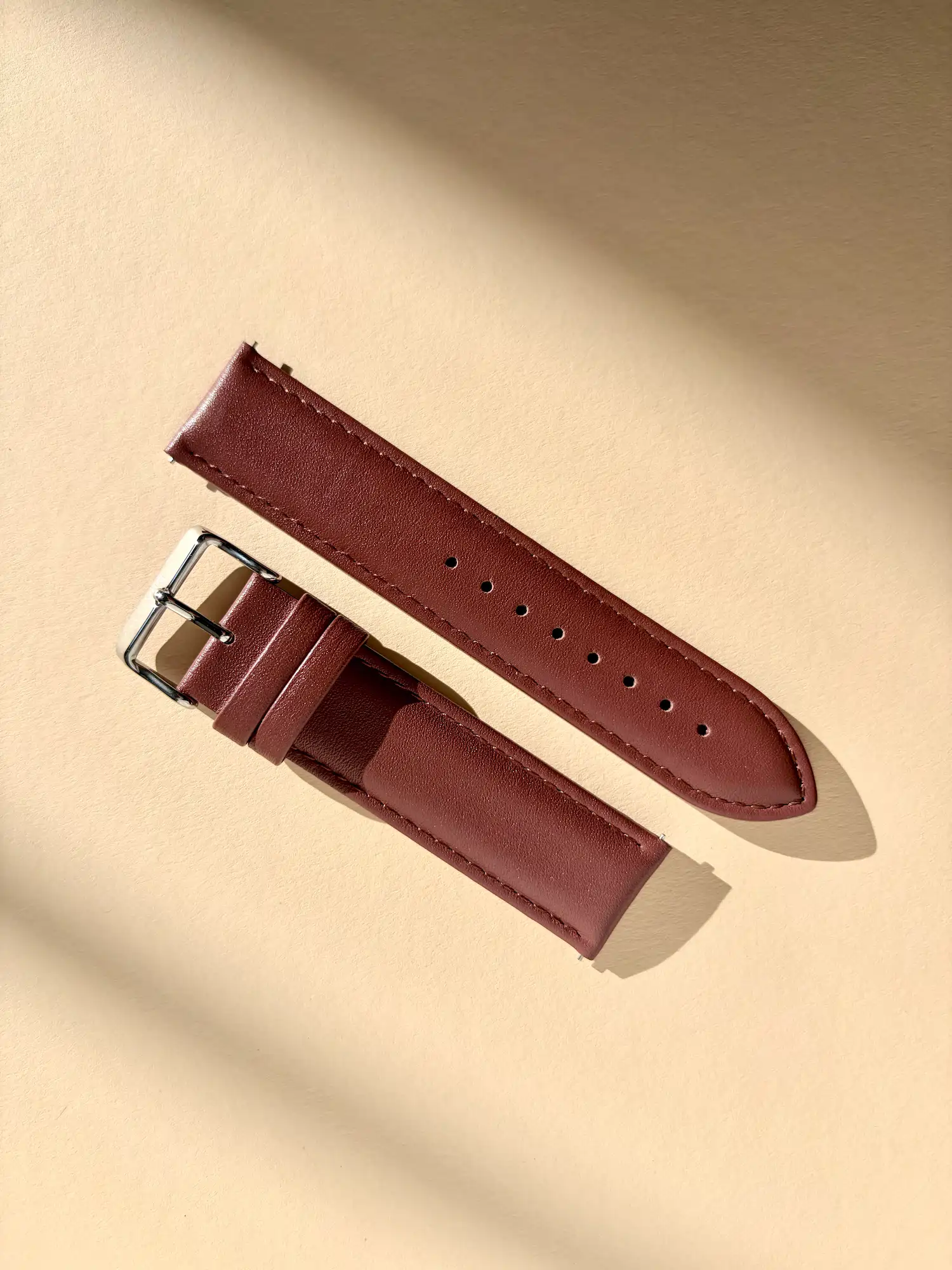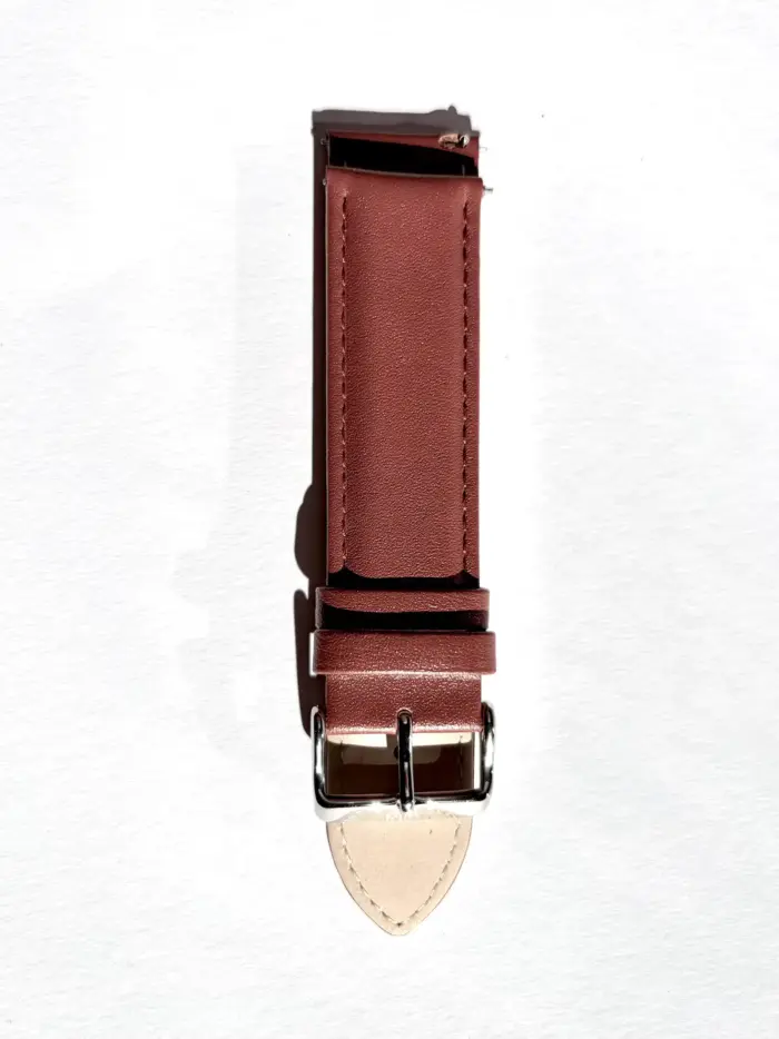 Das natürliche Glattleder trägt sich besonders angenehm und passt in diesem Braunton perfekt zu braunen Lederaccessoires. Die funktionale Naht wirkt schlicht, ohne von deiner Uhr abzulenken.