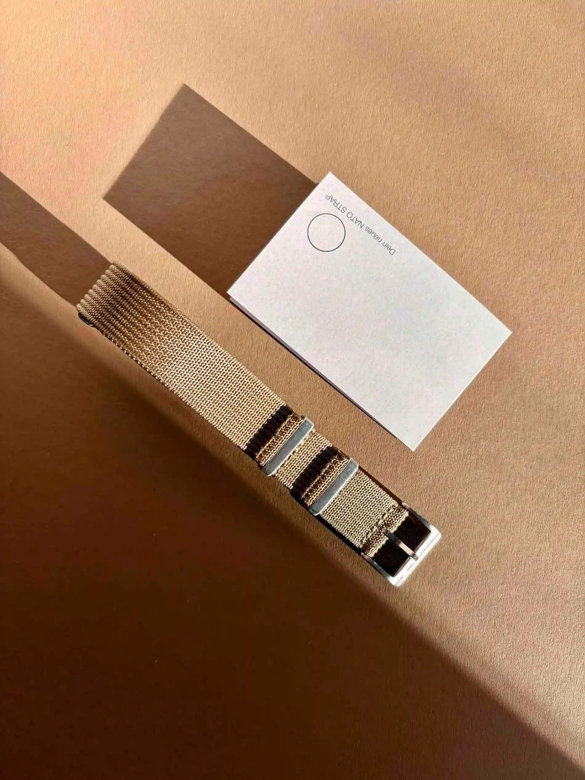 Unser starkes NATO Strap DESERT, gefertigt aus strapazierfähigem und wasserfestem Textilmaterial – die perfekte Ergänzung für deine Uhr.
