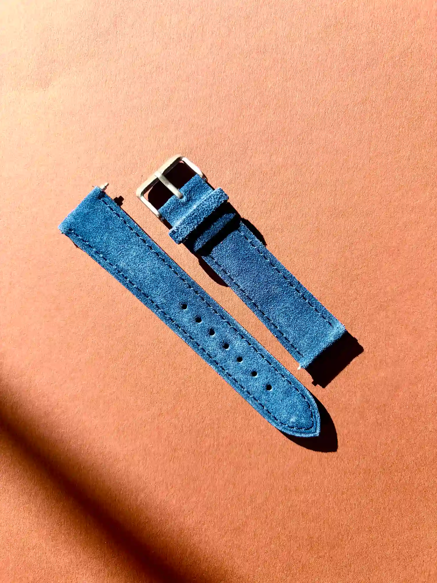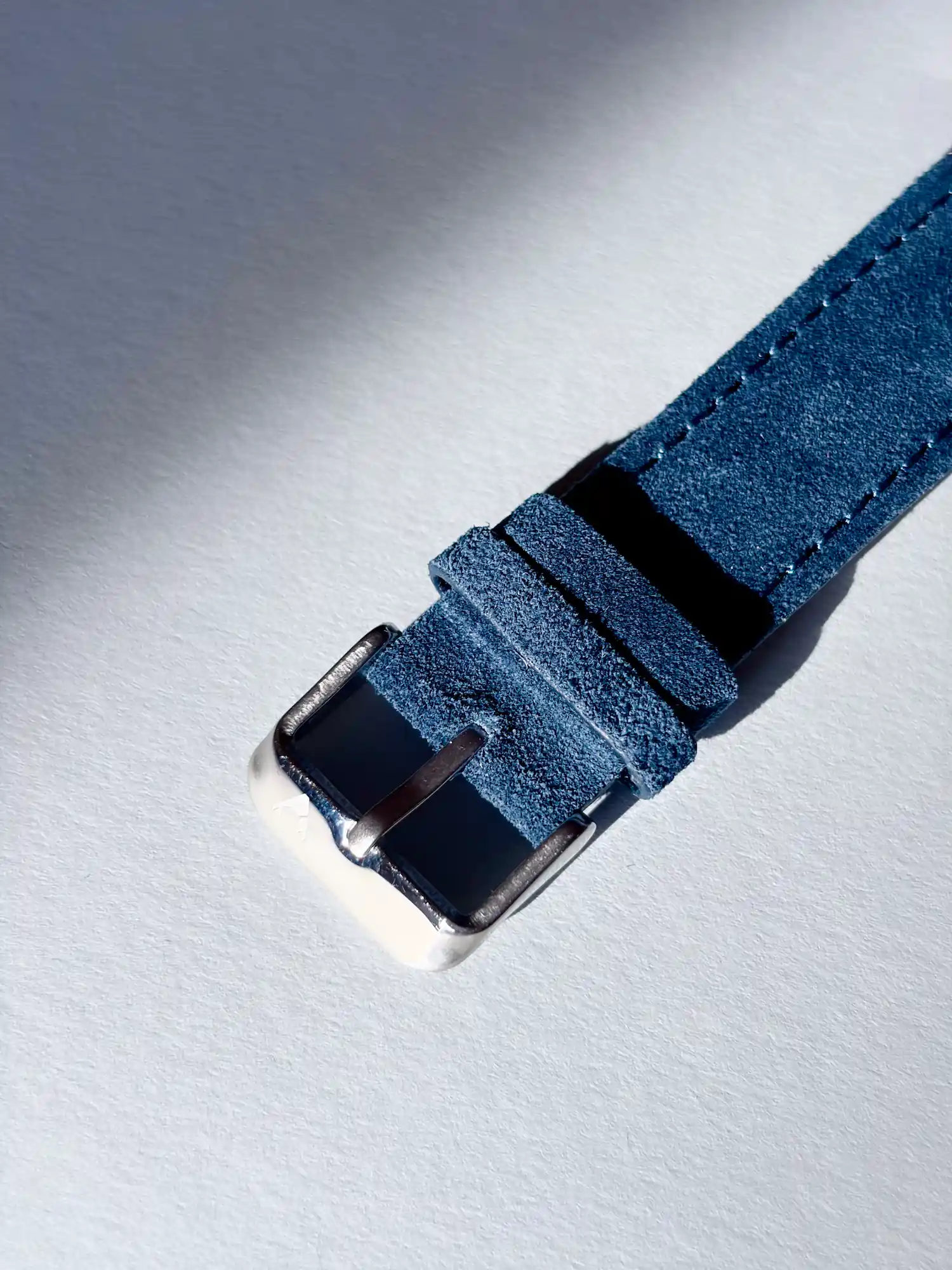Ein dunkelblaues Uhrenarmband, das hervorragend zu klassischen Uhren passt. Das hochwertige Wildleder fühlt sich dabei extrem weich am Handgelenk an.